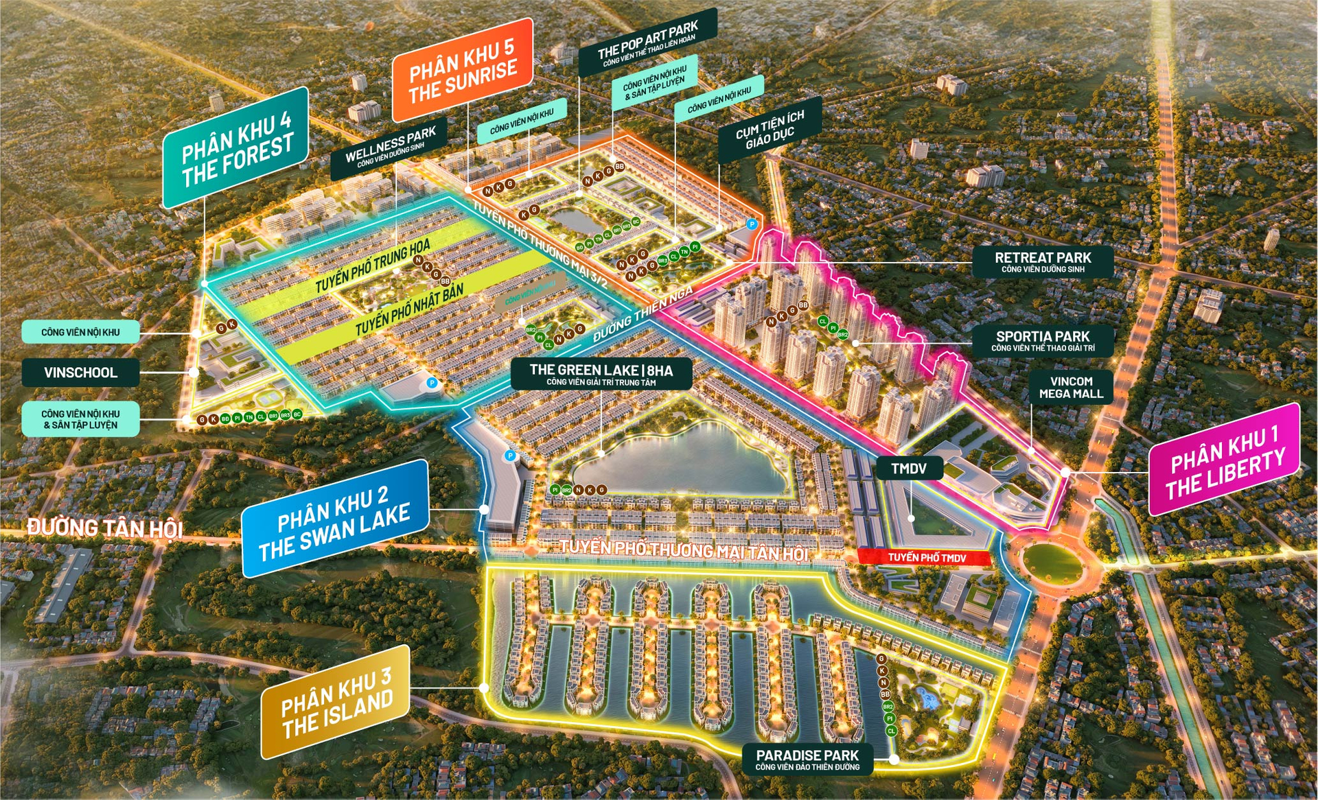 Phân khu phố thương mại độc đáo, được bao phủ bởi không gian xanh rừng sinh thái